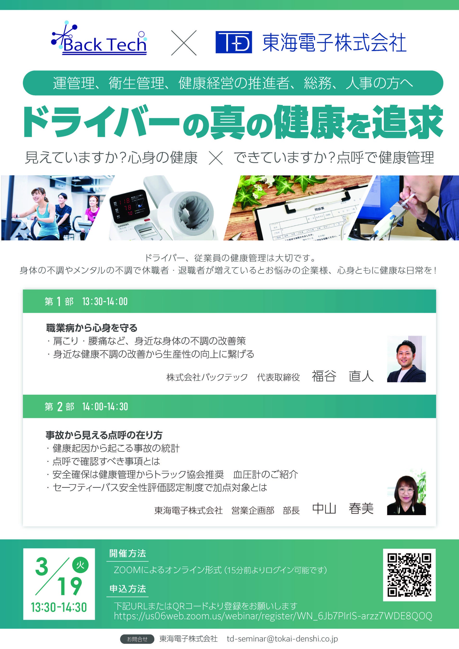 【バックテック×東海電子 合同ウェビナー】従業員の真の健康を追求!見えていますか?心身の健康×できていますか?点呼で健康管理3月19日(火)無料開催のお知らせ