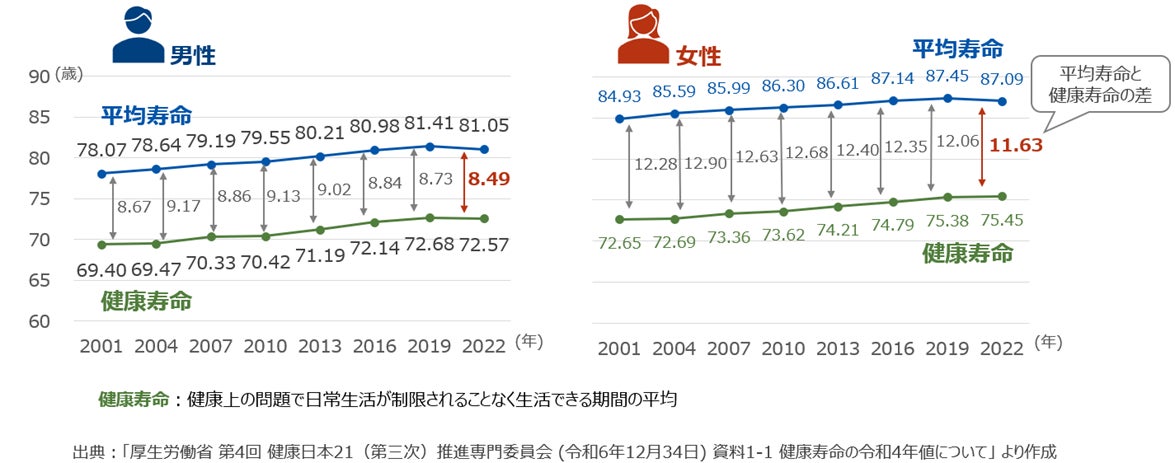 このように世界有数の長寿国となった日本では、男性、女性とも平均寿命と健康寿命が延びています。健康寿命とは、「健康上の問題で日常生活が制限されることなく生活できる期間」と定義されており、2022年の調査では、平均寿命と健康寿命の差は、男性8.49年、女性11.63年でした。2019年の前回調査と比べて、男女ともに平均寿命と健康寿命の差が縮小しました。今後、さらに高齢者が働き続けることで、健康を維持し、健康寿命を延ばして平均寿命との差を縮めることは、高齢者が健康に暮らす期間を長くすることでしょう。同時に、このように高齢者が健康でいられれば、国の社会保障費(介護費など)の抑制にもつながるため、高齢者の就労に対する期待は今後大きくなっていくと考えられます。