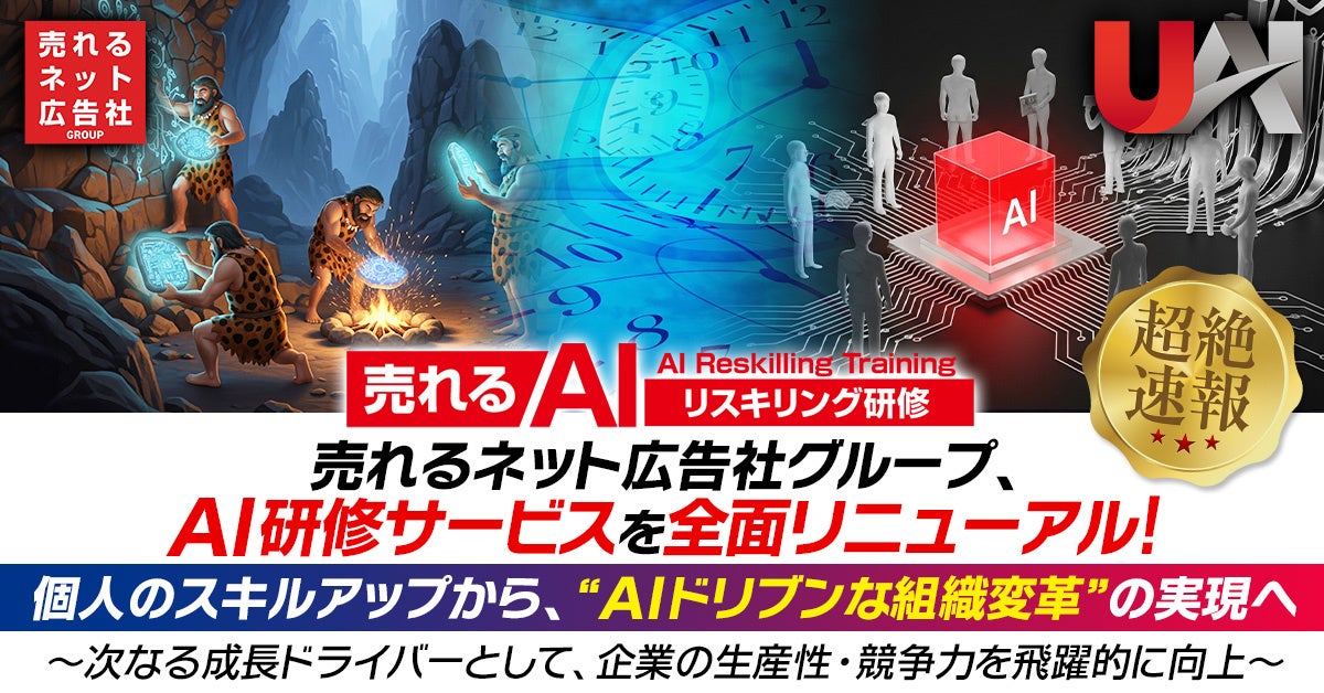 【超絶速報】売れるネット広告社グループ、AI研修サービスを全面リニューアル!個人のスキルアップから、“AIドリブンな組織変革”の実現へ~次なる成長ドライバーとして、企業の生産性・競争力を飛躍的に向上~
