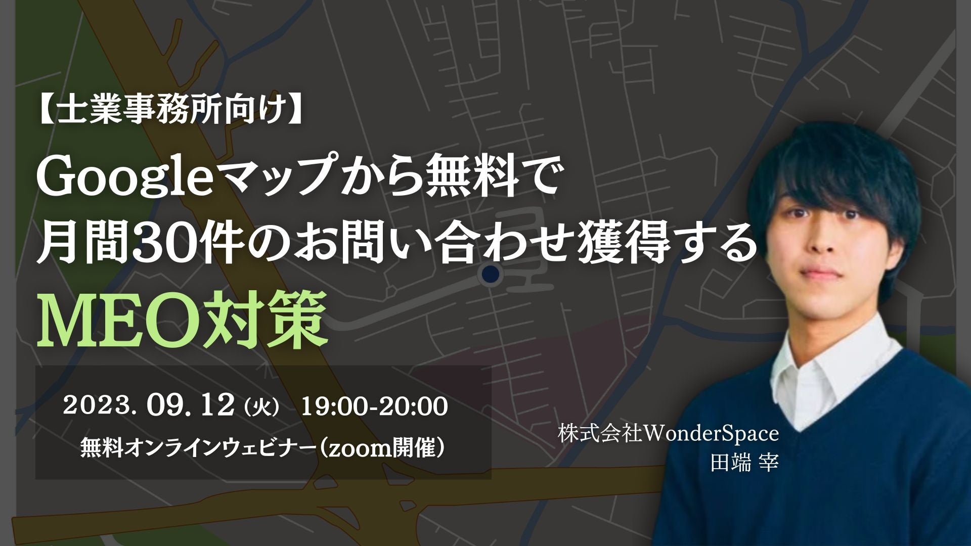 【士業事務所向けウェビナー開催】Googleマップから無料で月間30件のお問い合わせ獲得するMEO対策