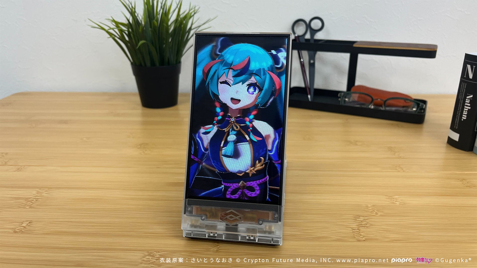 Gugenkaが提供するデジタルフィギュアサービス「ホロモデル」を、ホログラフィックディスプレイ「Looking Glass Go」上で再現します。専用ゴーグル不要で、まるで実体がそこにあるかのような立体映像を複数人で同時鑑賞可能です。
