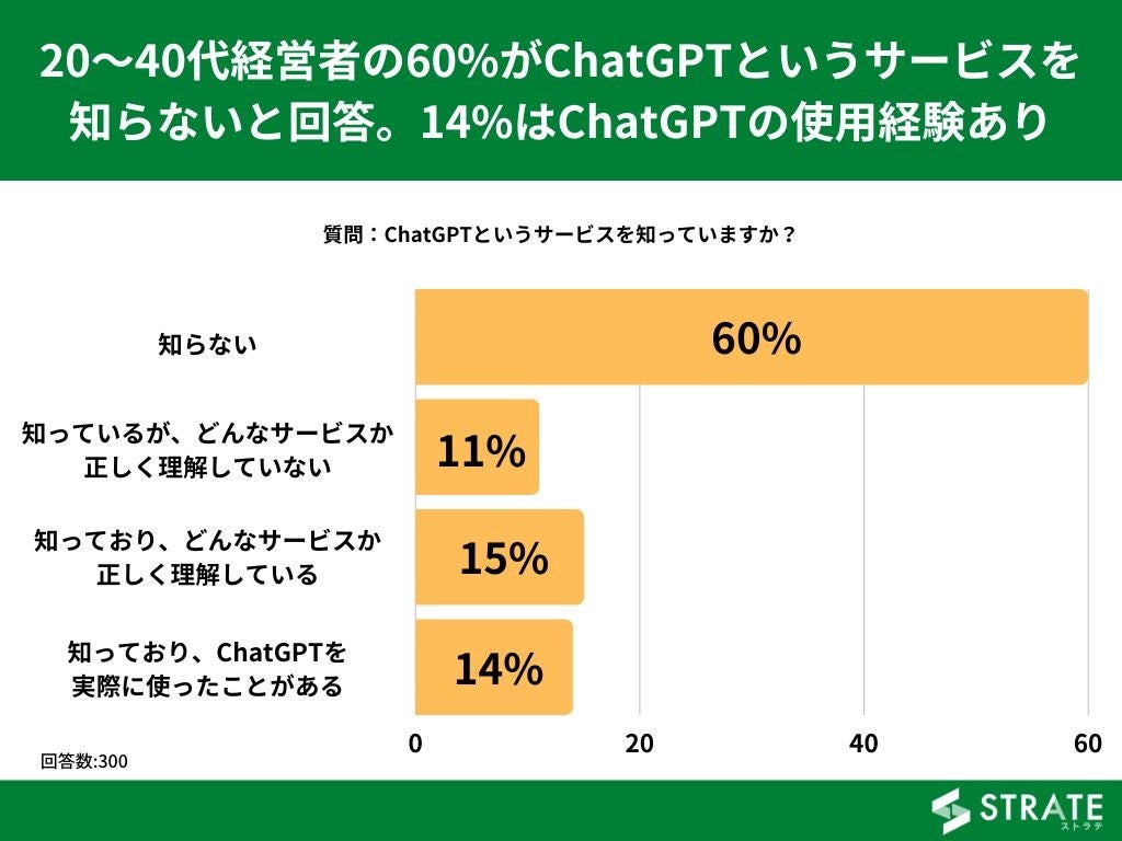 20~40代経営者の60%がChatGPTというサービスを知らないと回答。14%はChatGPTの使用経験あり【ChatGPTに関するアンケート】