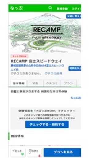 ■キャンプ場予約サイト「なっぷ」 RECAMP富士スピードウェイページ
