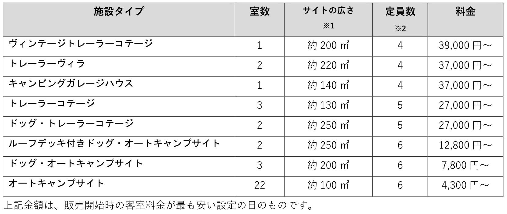 ※2.定員はプラン販売時の定員です。施設毎の定員とは異なる場合があります。