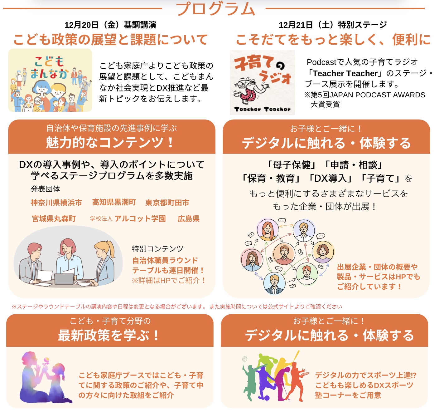 こども家庭庁主催「こども・子育てDX見本市」(12月20日~21日 会場:東京国際フォーラム ホールE2)の事前来場登録とセミナー申込を開始いたしました。