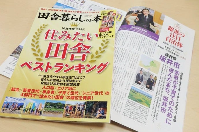 橋向課長補佐によると、このフェアに足を運んだ理由に、ちょうどこのフェアの前に、宝島社の「田舎暮らしの本2月号で「住みたい田舎暮らしベストランキング」が発売されたことも「大きかった」と話す。この月刊誌は、地方への移住を考える人には、バイブル的な存在の雑誌で、今回のランキングで「北陸エリア1位」「全国(人口5万以上10万人未満の市)3位」という好成績で上位にランクされ、池田禎孝市長インタビューなど2ページに渡って特集も組まれた。このランキングは編集部が用意した移住に関する336項目のアンケートを基に、それに回答した564市町村を数値化したもので、坂井市は全国(5万人以上10万人未満の市)区分で総合で3位だが、さらに内訳では、若者世代・単身者部門と子育て世代でも「3位」、シニア世代でも「4位」と幅広い世代で高ランクとなった。