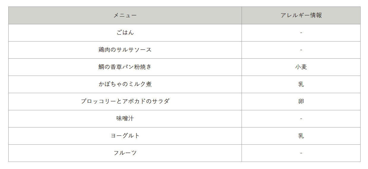 ・アレルギーをお持ちの方は、アレルギー表をご確認ください。
