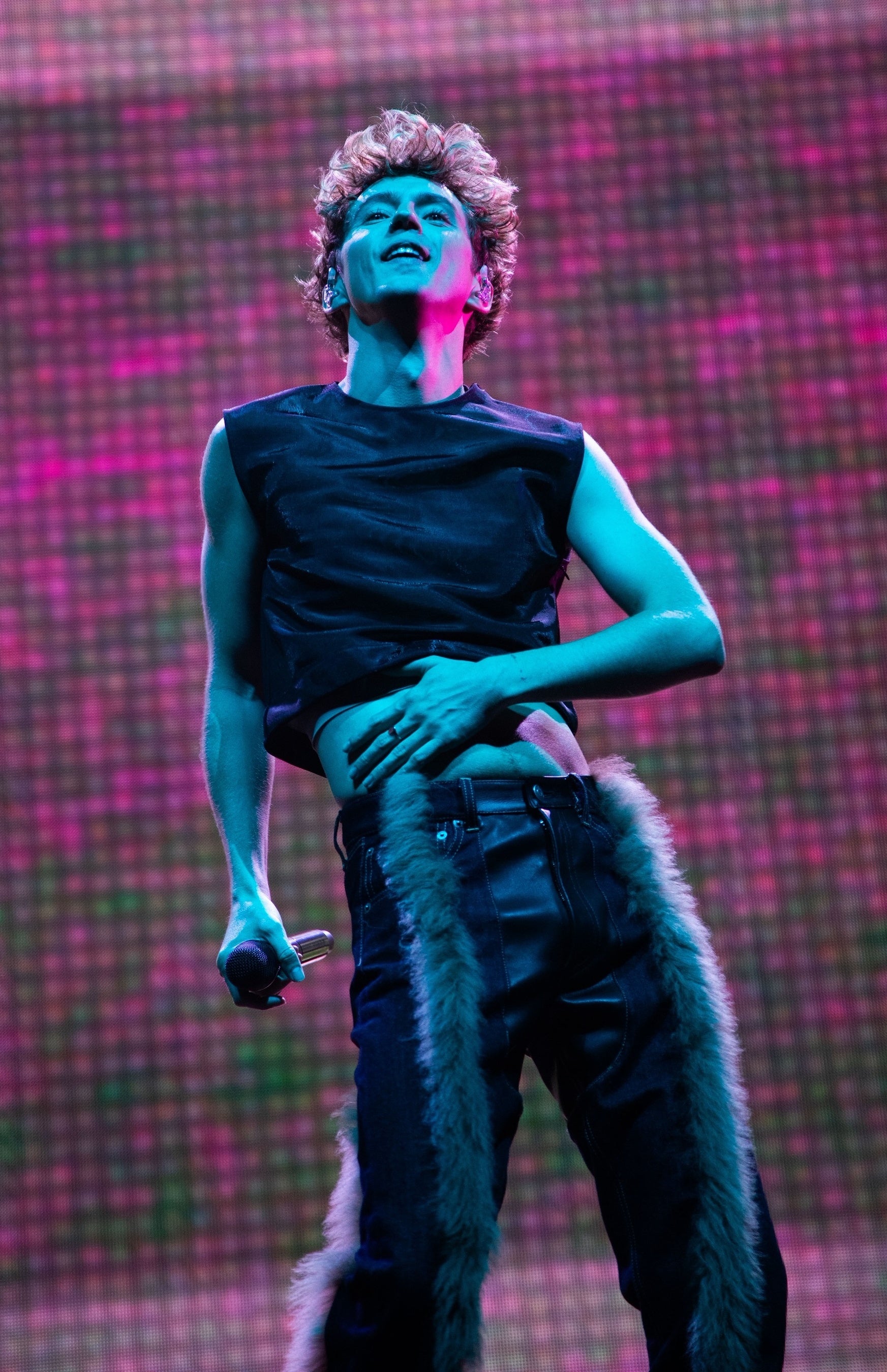 6月28日、トロイ・シヴァンがバーミンガムで行われた「Something to Give Each Other」ツアーでマックイーンを着用しました。