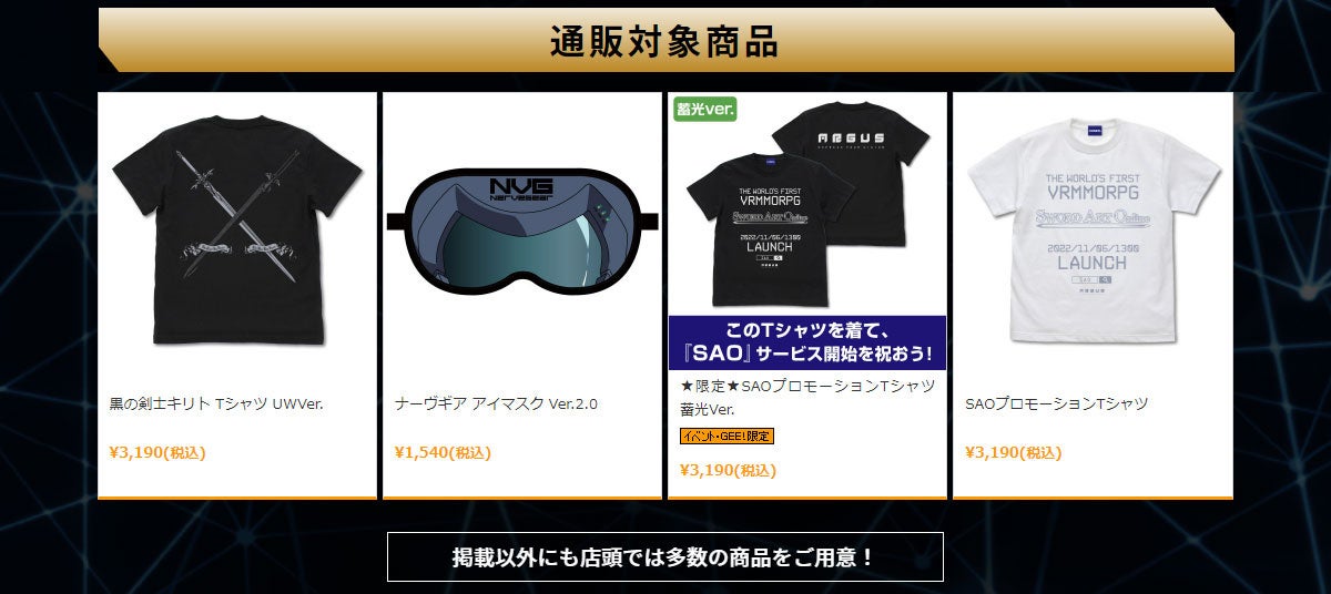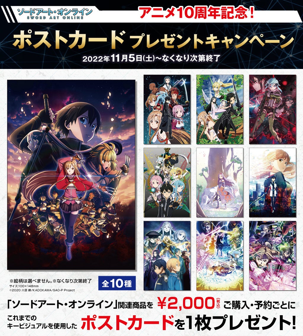 『ソードアート・オンライン』のアニメ10周年を記念して、開催店舗にて『ソードアート・オンライン』関連商品を¥2,000(税込)ご購入・ご予約ごとにこれまでのキービジュアルを使用した【ポストカード(全10種)】を1枚プレゼント!