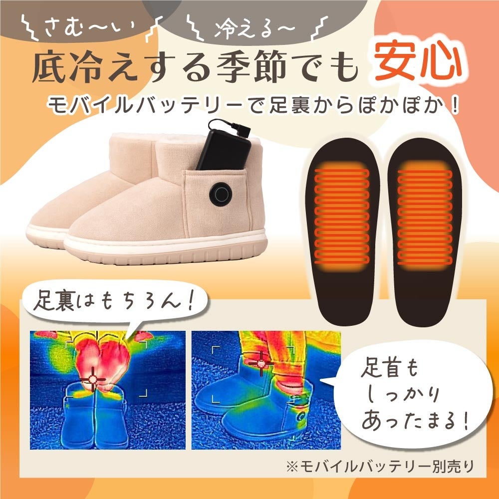 モバイルバッテリーでコードレスで使えるヒーター内蔵ムートンブーツ