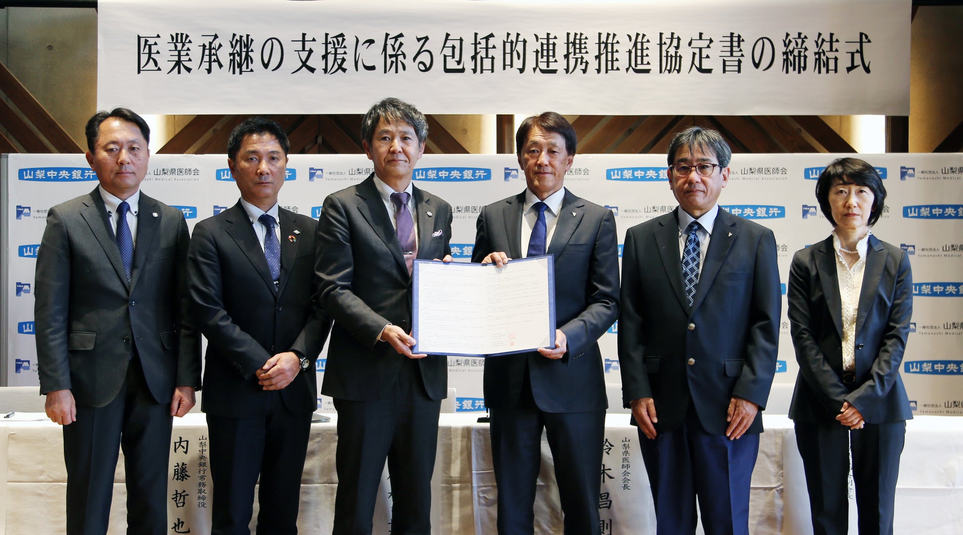 株式会社山梨中央銀行(頭取 古屋 賀章)は、一般社団法人山梨県医師会(会長 鈴木 昌則)と「医業承継の支援に係る包括的連携推進協定書」を締結いたしました。