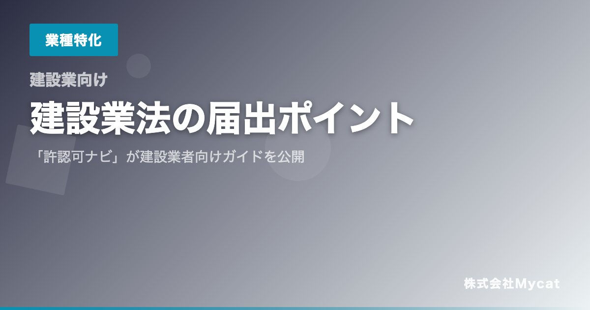 株式会社Mycat(本社:東京都目黒区)は、許認可検索サービス「許認可ナビ」(https://kyoninka.xyz)において、建設業者向けの届出ガイドを公開いたします。