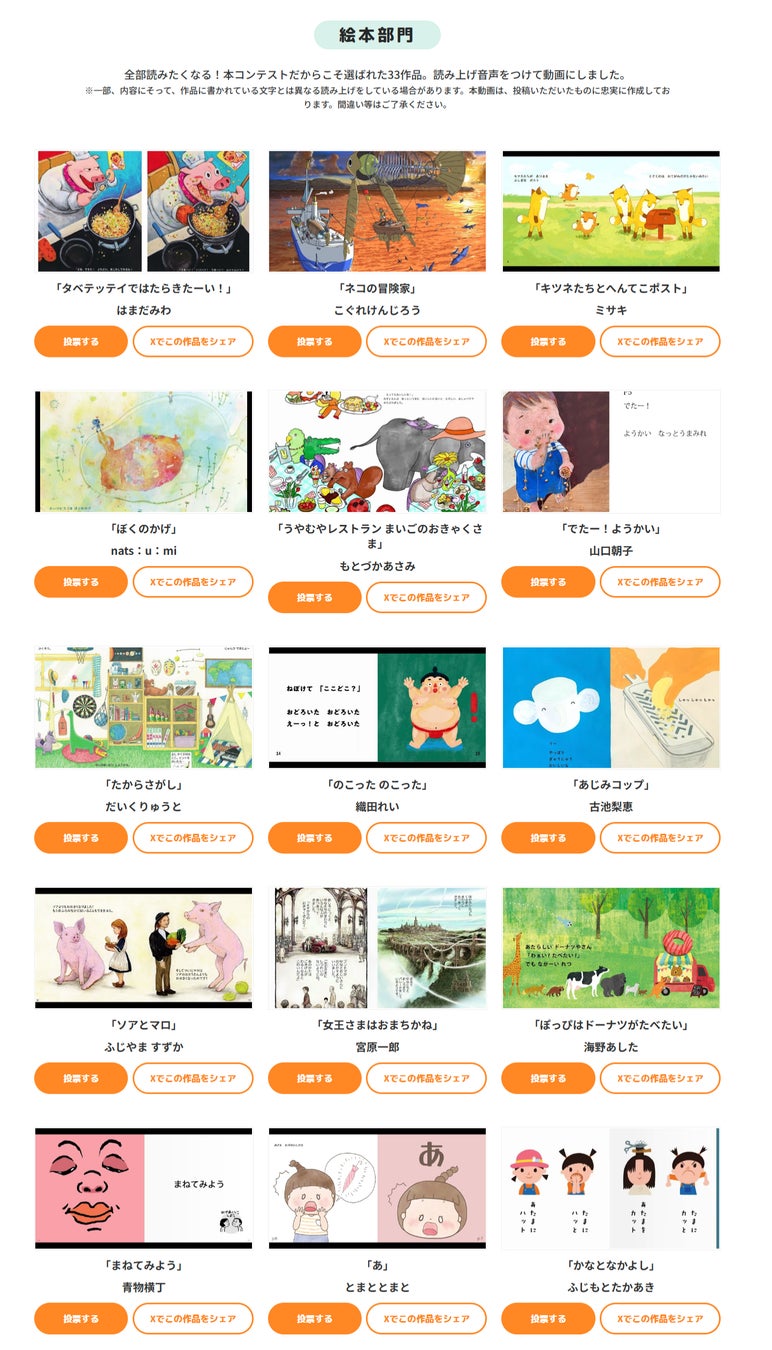 読者自身が読みたい絵本を選んでほしい! 投票・視聴数・いいね!・コメントが最終審査のポイントに!