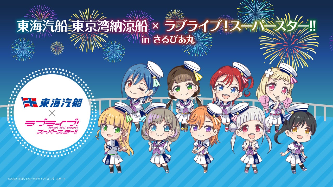 東海汽船株式会社 https://www.tokaikisen.co.jp (東京都港区、代表取締役社長:山﨑潤一、以下 東海汽船)は、2022年7月1日(金)~9月11日(日)の毎日、東京湾をクルージングしながら美しい夜景と東京諸島の食材を使用したフードやドリンク、音楽イベント等を楽しめる『東京湾納涼船』を運航いたします。その内5日程をTVアニメ「ラブライブ!スーパースター!!」 https://www.lovelive-anime.jp/yuigaoka/ とコラボし、限定ノベルティ付き乗船券やコラボグッズの販売、ラブライブ!スーパースター!!仕様の船内装飾等を実施いたします。