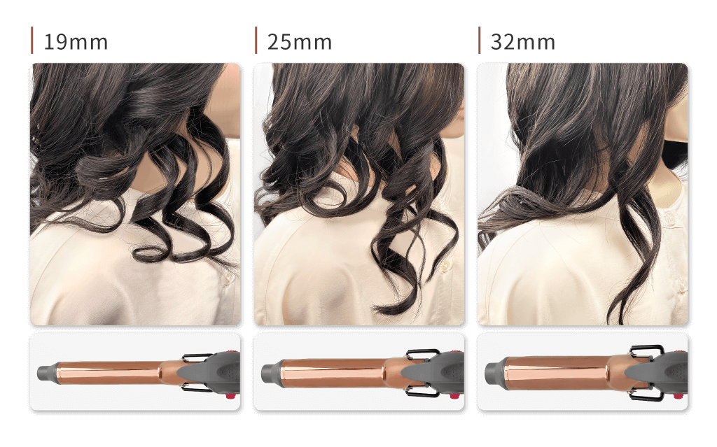 バレル径が細いタイプだとしっかりとした弾力のあるカールが完成し、太いタイプならナチュラルなくせ毛風の印象に。
