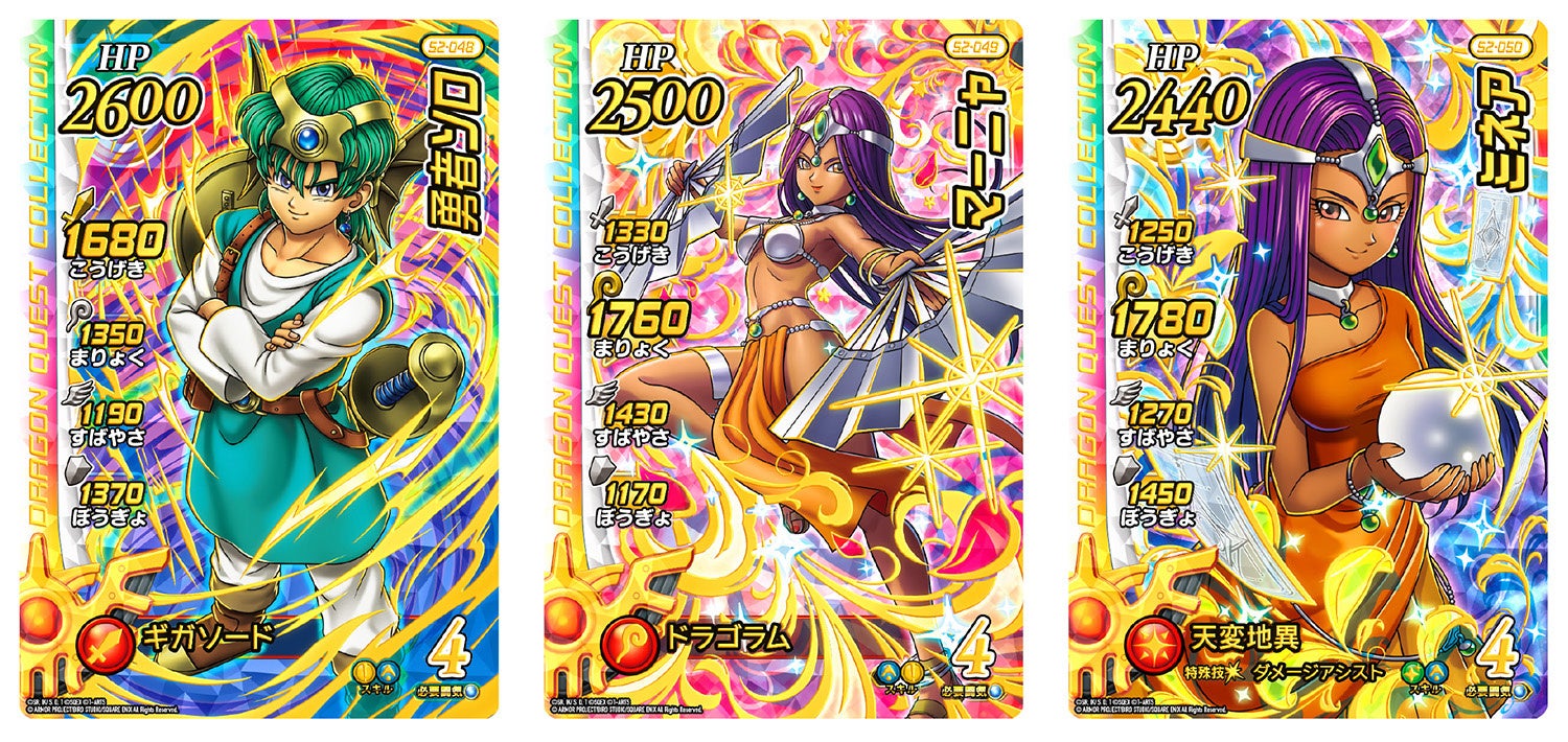 「超2弾」には「ドラゴンクエストIV 導かれし者たち」から「勇者ソロ」「マーニャ」「ミネア」「アリーナ」「魔剣士ピサロ」が「ギガレアカード」でラインアップされます。