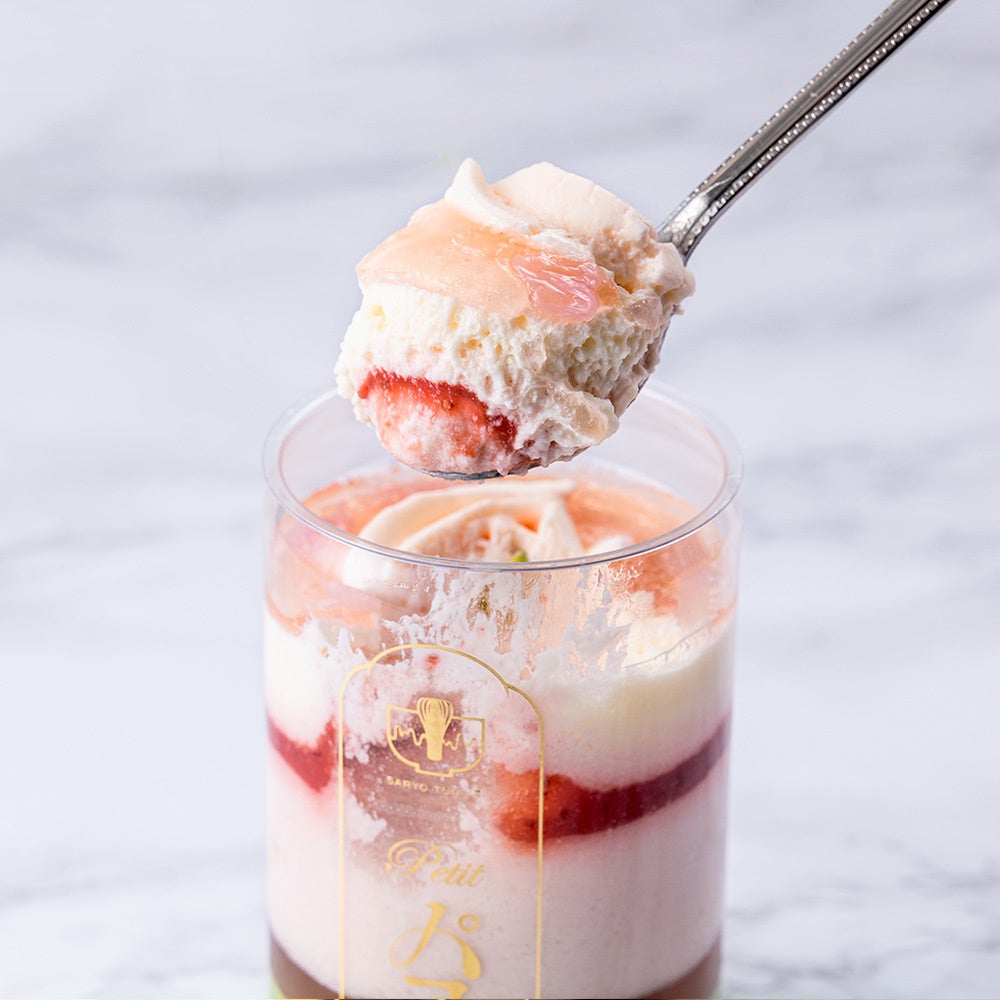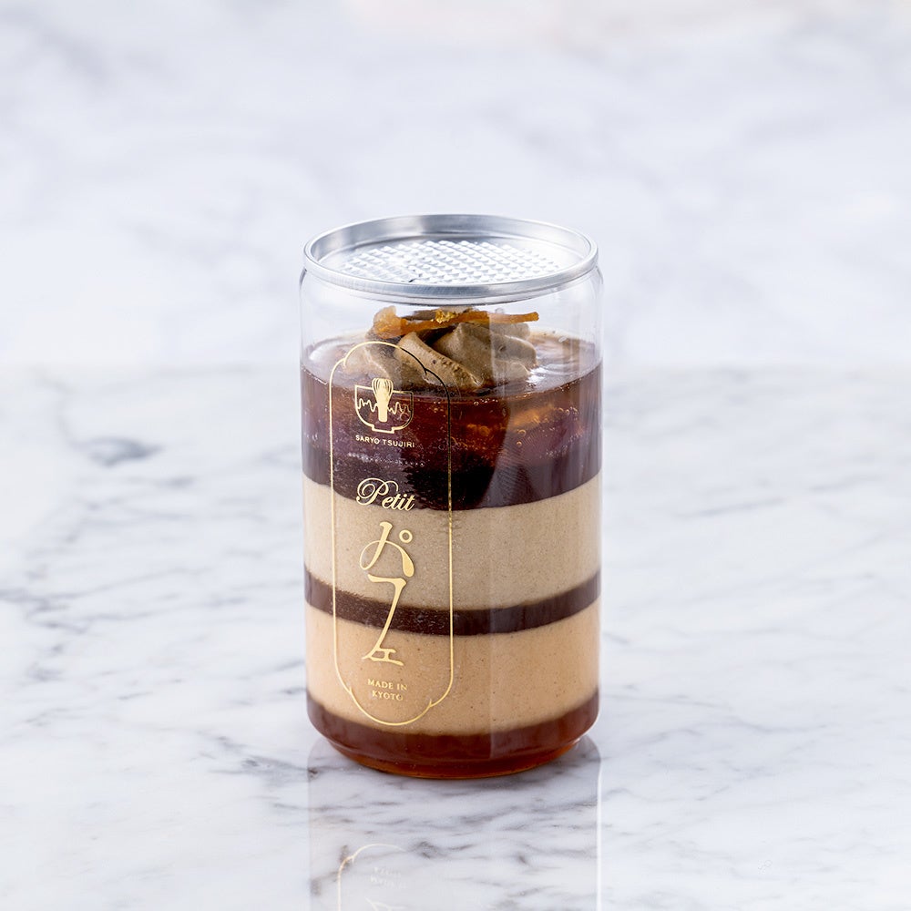 “petit(プティ)”とはフランス語で「小さな」「かわいい」という意味で、“parfait(パフェ)”は語源は「完璧な」。その名の通り、茶寮都路里が「完璧なスイーツ」を目指して作った、新しいパフェです。一層ずつ丁寧に手作りした、お茶の風味と調和する素材たち。食べ進めるたびに楽しめる味のハーモニーは、茶寮都路里でしか味わうことのできない一品。パフェをご自宅でご堪能いただくために誕生した、 新しい茶寮都路里スイーツです。
