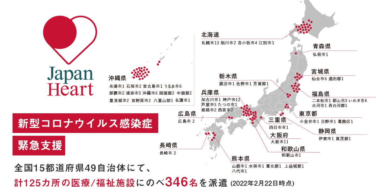 このたびの第6波到来により、ジャパンハートでは2月の1カ月間で計30カ所(2月25日時点)の医療機関・福祉施設へクラスター支援を実施しました。内、2020年4月の活動開始以来初めて和歌山県への支援を実行する等、