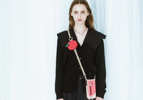 スマートフォンケースやバッグのストラップと付け替えてご使用いただけるカラビナショルダーが新登場。クマちゃんとリンゴの小物入れは取り外し可能で、気分やシーンに合わせてカスタマイズしていただけます。