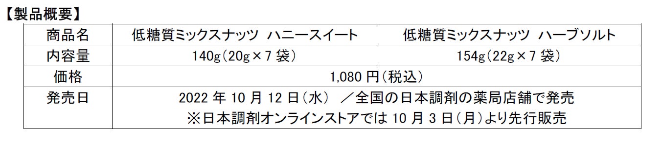 管理栄養士監修、手軽においしく栄養を摂取できる低糖質おやつ!日本調剤 お好みで選べるロカボ*商品「低糖質ミックスナッツ」2種を新発売