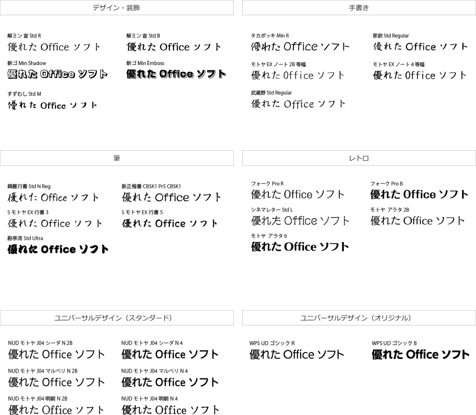 今回のスペシャルエディション「WPS Office 2」Deluxeは、Microsoft Officeと同じ日本語フォント11書体(29種類)を追加収録したStandard EditonのWPS Office 2 for Windowsをベースに、資料作成やチラシ作成の際にデザイン性が広がる特別テーマフォント28書体を追加搭載しています。