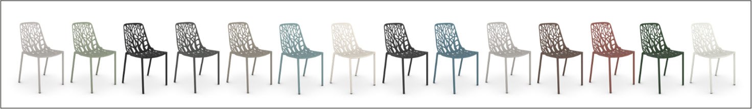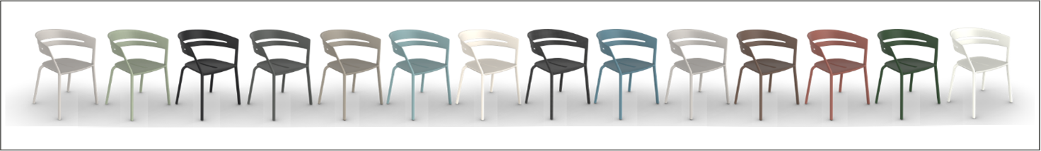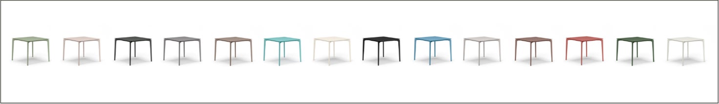 2種類の椅子と、1種類のテーブルで全14色の豊富なカラーバリエーションとなっており、お庭の雰囲気に合わせた幅広いコーディネートが可能。スチールに比べ耐久性が高いアルミダイカストを使用し、サビの心配がいりません。また、スタッキング可能で、洗濯やDIYなどで広くスペースを使いたいときはコンパクトに収納できます。