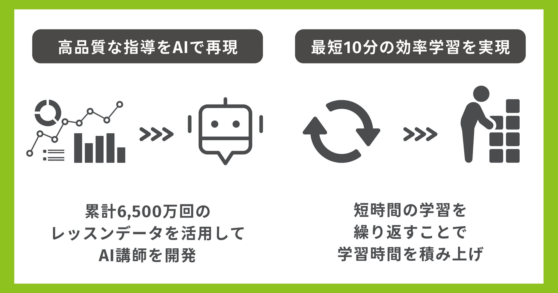 累計6,500万回超のレッスン実績を活かし、最短10分で効率学習を実現