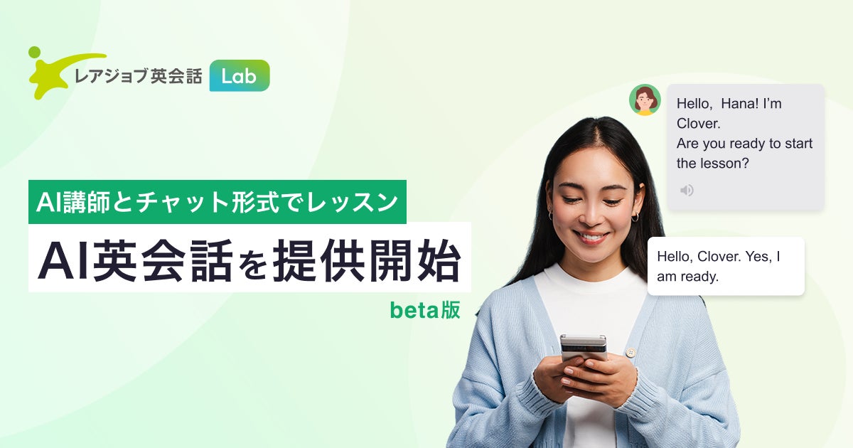 オンライン英会話サービスを提供する株式会社レアジョブ(以下、レアジョブ)は、AI講師による英語レッスン「レアジョブAI英会話 β」(以下、AI英会話 β)の提供を開始しました。本サービスは、レアジョブがこれまで提供してきた6,500万回を超えるレッスン実績をAIに活用し、忙しいビジネスパーソンでも隙間時間に効率的に学習できる新たなソリューションです。