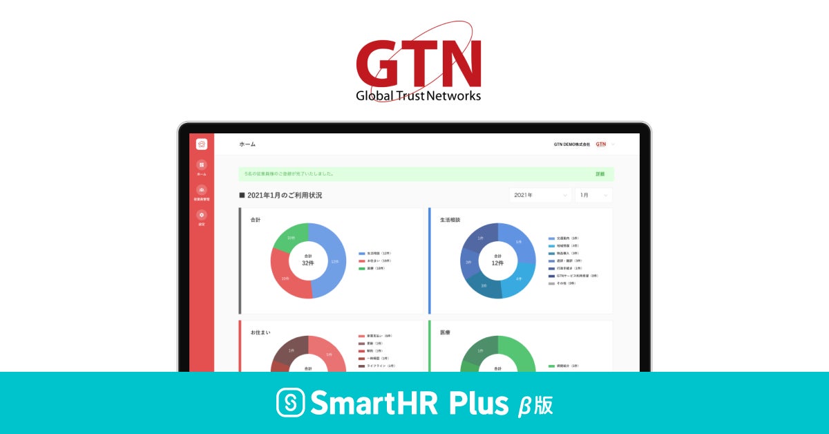 株式会社SmartHR(本社:東京都港区、代表取締役CEO:芹澤 雅人)が運営する、クラウド人事労務ソフト「SmartHR(スマートエイチアール)」は株式会社グローバルトラストネットワークス(本社:東京都豊島区、代表取締役社長:後藤 裕幸)が提供する外国人支援クラウド「GTN Assistants for Biz」と2023年2月1日よりシステム連携し、協業を開始しました。