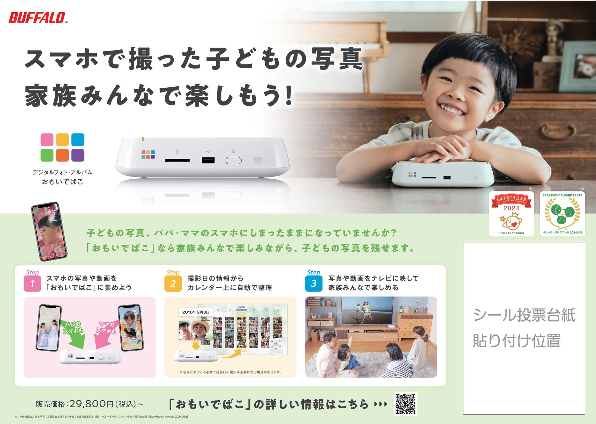 メルコホールディングス(東・名 6676)グループの株式会社バッファロー(本社:愛知県名古屋市、代表取締役社長:牧 寛之、以下バッファロー)が製造・販売するデジタルフォト・アルバム「おもいでばこ」が、「ママがパパにやってほしい大賞」1位と「パパがやってみたい大賞」2位を獲得いたしました。