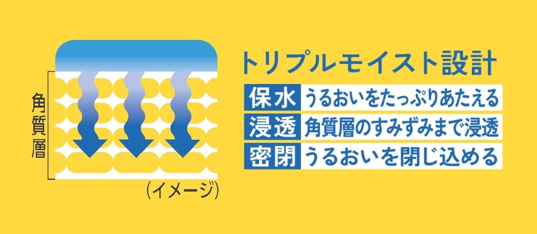 水分・油分・美容成分をバランスよくお肌に補給する、トリプルモイスト設計で、角質層のすみずみまでうるおいをあたえて閉じ込めます。