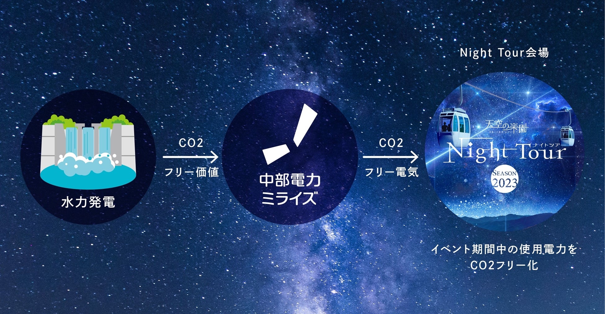 天空の楽園 ナイトツアー ウインターシーズン開催期間中、会場の富士見台高原ヘブンスそのはらで使用する電気をCO2フリー電気でまかないます。