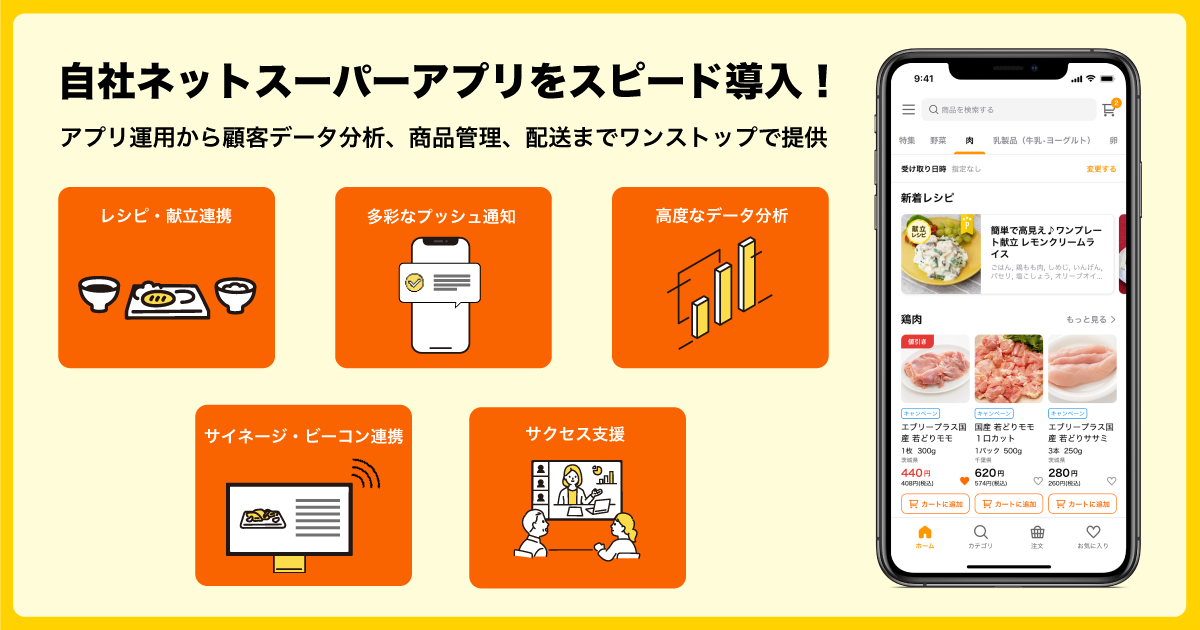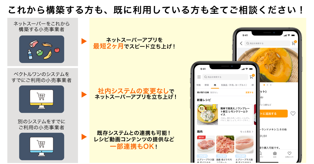 エブリー、ベクトルワン、ココネットで業務提携を開始。自社ネットスーパーアプリを最短2ヶ月で開発できるプラットフォームを提供!