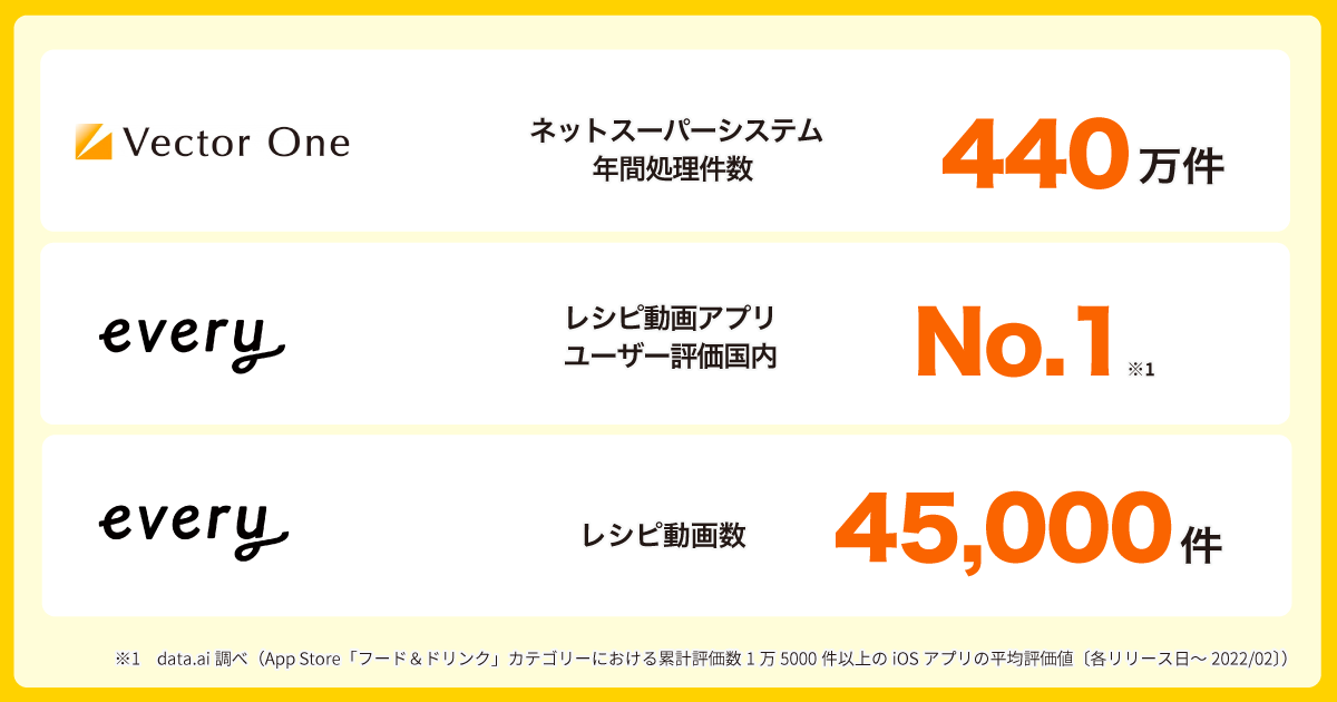 (※1)data.ai調べ(App Store「フード&ドリンク」カテゴリーにおける累計評価数1万5000件以上のiOSアプリの平均評価値〔各リリース日~2022/02〕)