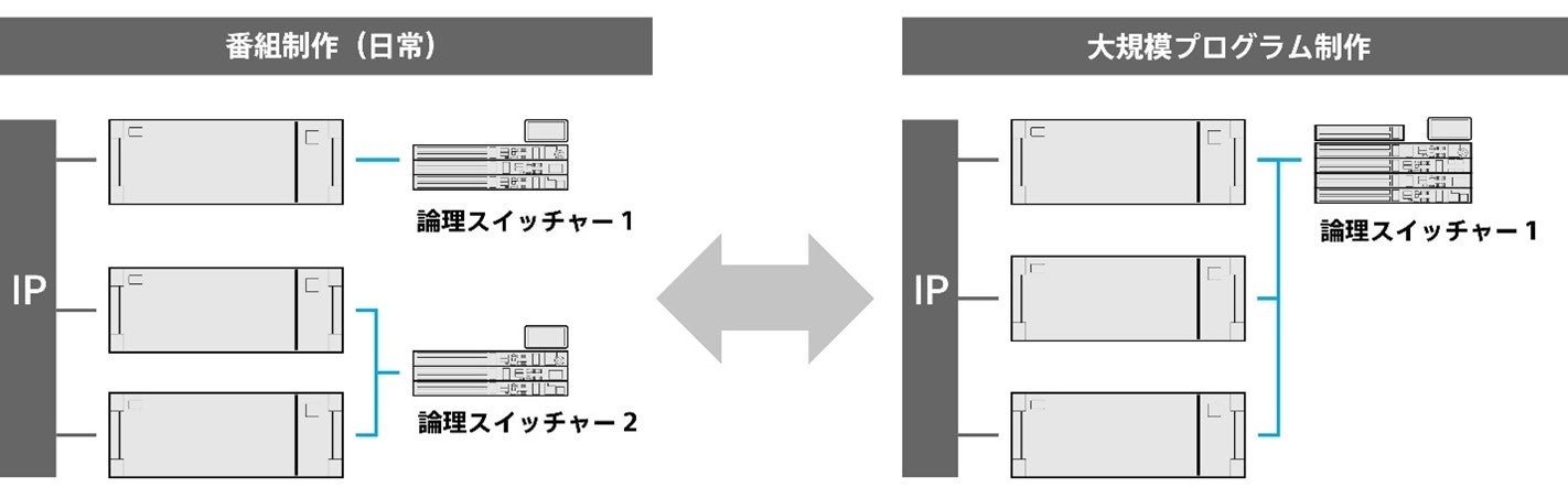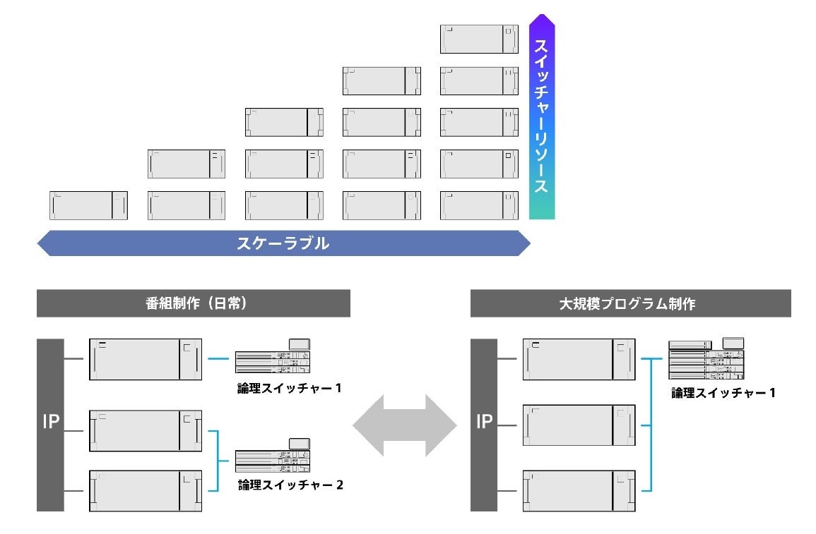 ※1: 一つの論理スイッチャーとしては、最大HD 6M/E 160入力/64出力、4K 6M/E 144入力/64出力