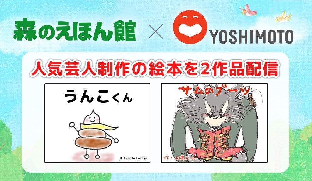 【吉本興業とのコラボ企画】吉本興業所属の人気芸人制作の絵本2作品を絵本読み放題のアプリ「森のえほん館」で配信!