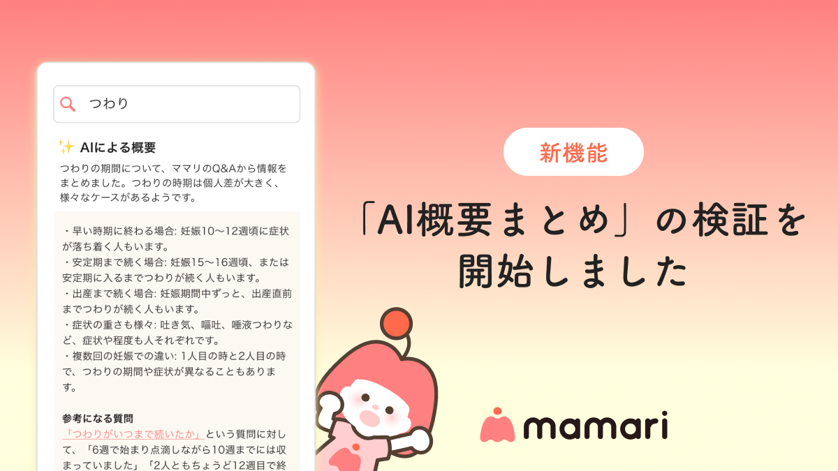 ママ向けコミュニティアプリ「ママリ」、新機能「AI概要まとめ」の検証を開始数百万件の子育てQ&Aデータ×AI技術でママの疑問に即回答