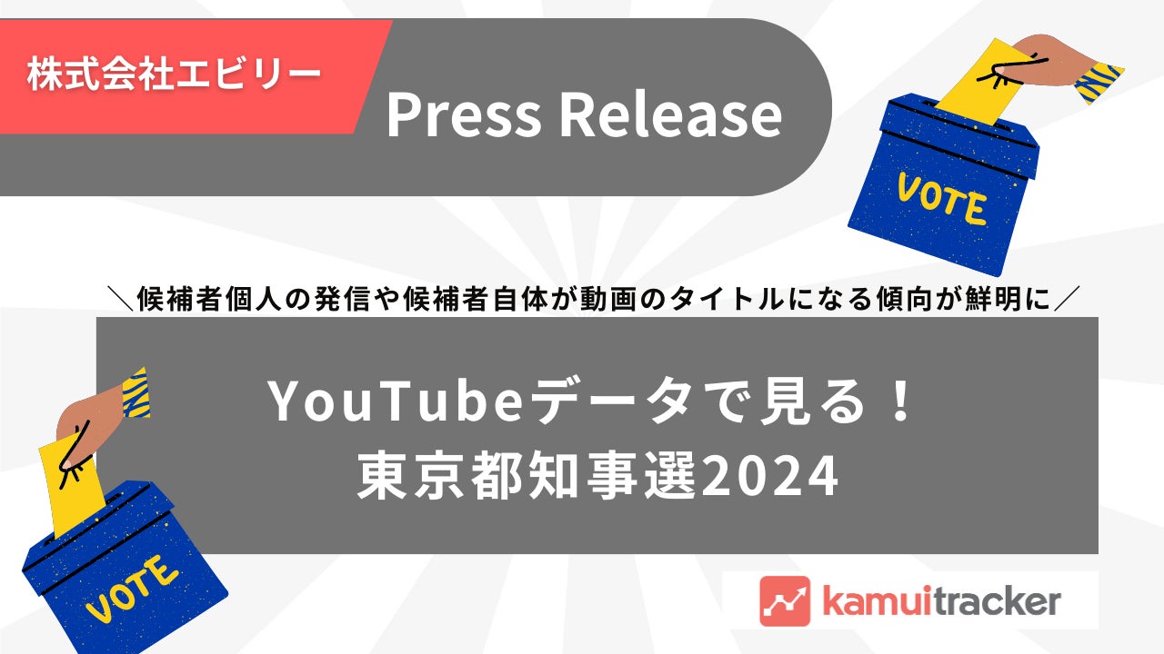 株式会社エビリー(本社:東京都渋谷区、代表取締役社長:中川恵介 以下、エビリー)は、6月20日(木)に告示された東京都知事選2024について、登録者数1,000名以上の国内YouTubeチャンネルの視聴データが分析できるkamui tracker(カムイトラッカー)を使って、YouTube上でどのくらい都知事選が注目を浴びているのか分析しました。