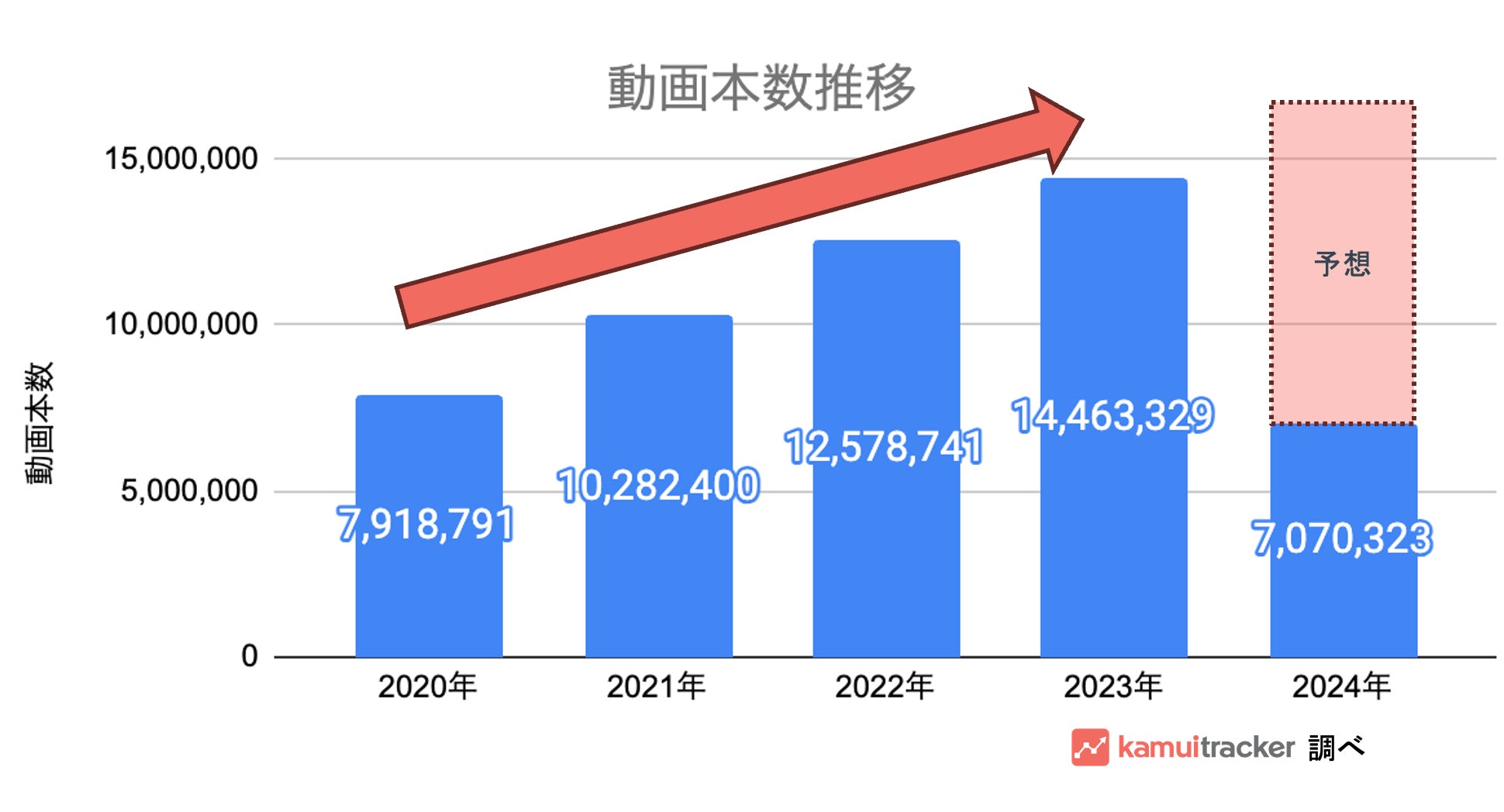 前述の図からもわかるように、YouTubeに上がっている動画本数は右肩上がりとなっており、YouTubeは依然として注目を浴びているメディアであると言えます。