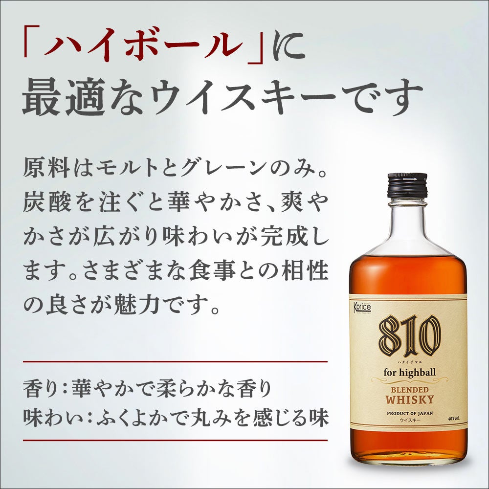 近年、国内外のウイスキー製品の人気が高まっていますが、それに伴う品薄状態や原材料の高騰、円安などにより価格上昇が続いています。このような市場環境の中で、当社では、より手軽にウイスキーを楽しんでもらうため、お求めやすい価格で多くのお客様に提供することを目指し、ブレンデッドウイスキー「810(ハチイチマル)」を開発しました。この商品名は、【ハイボールの日】である8月10日が由来となっています。
