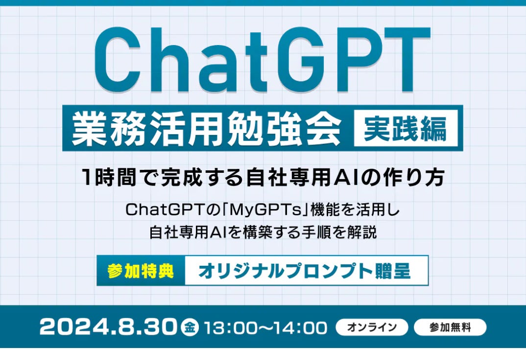 そこで、今回のChatGPTビジネス活用勉強会では、一切エンタメ要素や個人利用のテーマを排除し、全編ビジネスユースでの話を展開します。さらに、ChatGPTの「MyGPTs」という機能を使って、勉強会中に、ロープレAIや社長クローンを構築する手順も解説します。