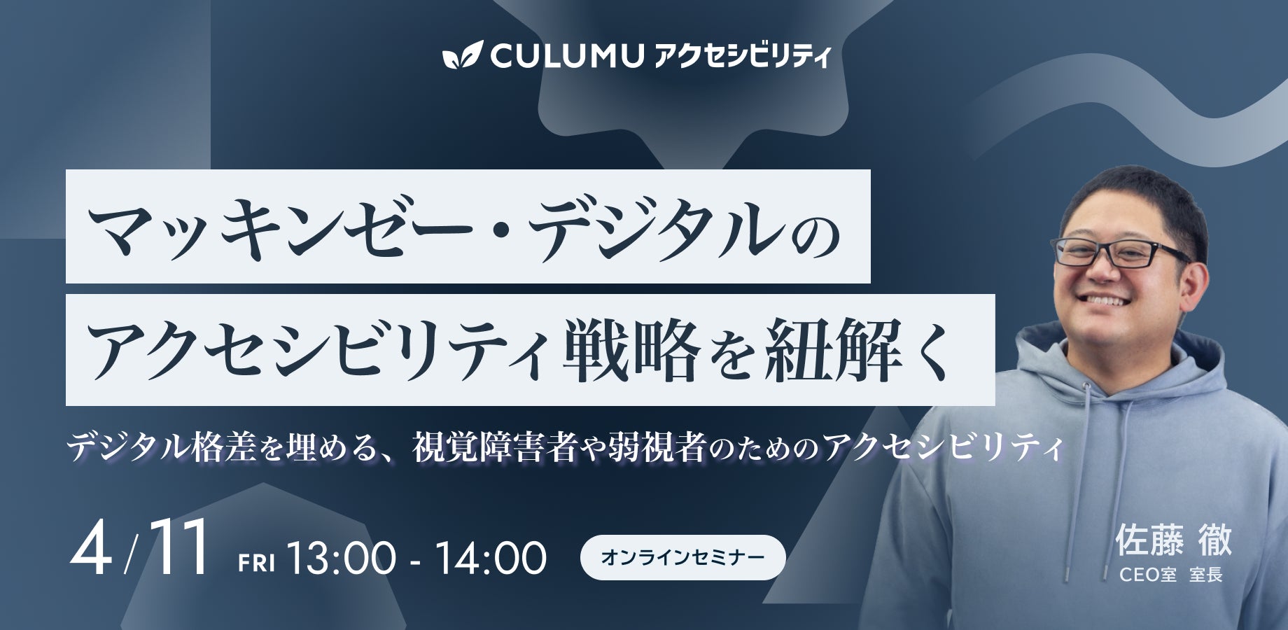 株式会社STYZ(東京都渋谷区、田中辰也 代表取締役社長)は、当社内で運営するインクルーシブデザインスタジオCULUMU(くるむ)主催のアクセシビリティセミナーを4月11日(金)13時からオンライン開催します。