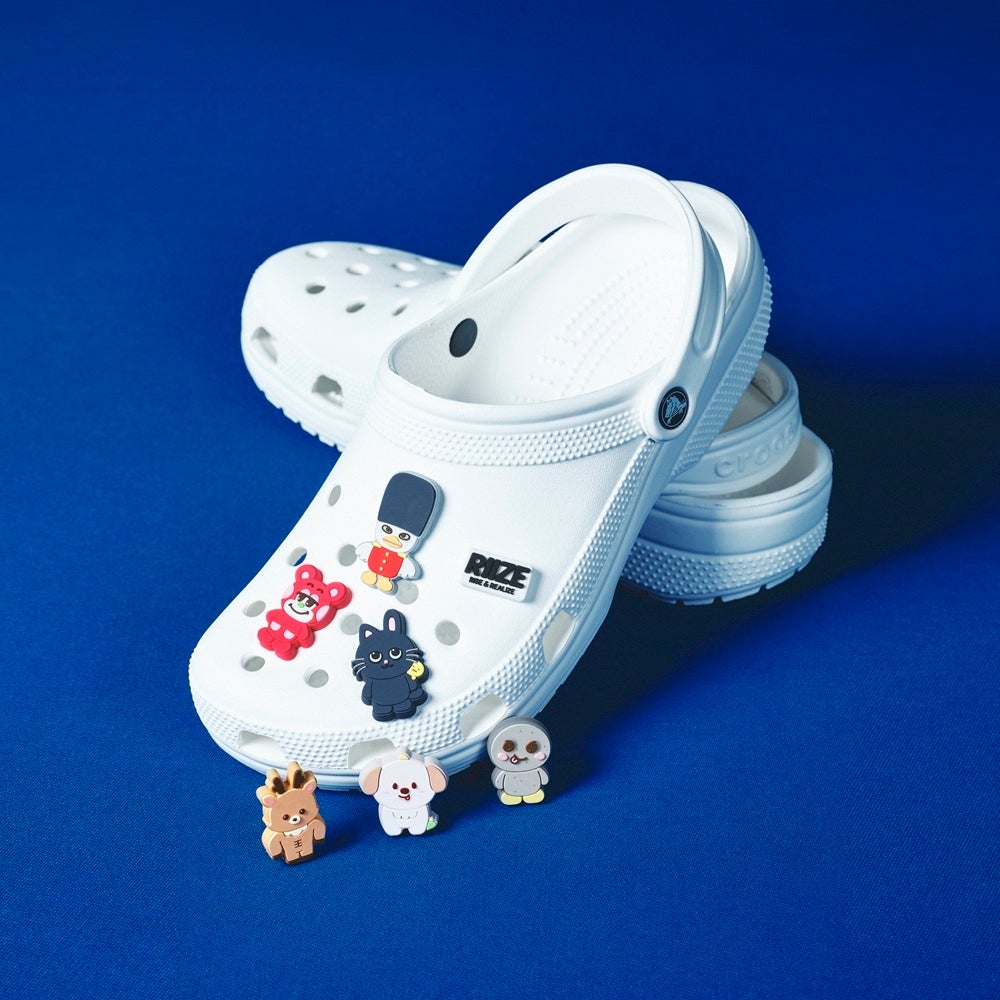 韓国発の人気ボーイズグループ「RIIZE」のメンバーが自ら描いたキャラクターから生まれた「WE LITTLE RIIZE」は、その愛らしいデザインでファンの心をつかんできました。このたび、「WE LITTLE RIIZE」のキャラクターたちが、クロックスのジビッツ™ チャームとなって登場。ファンにはたまらないコラボレーションが実現しました。キュートなキャラクターたちがジビッツ™ チャームとしてクロックスを彩り、足元から日常にワクワクとトキメキをプラス。推しキャラクターを身につけられる楽しさが詰まった、特別なコレクションです。