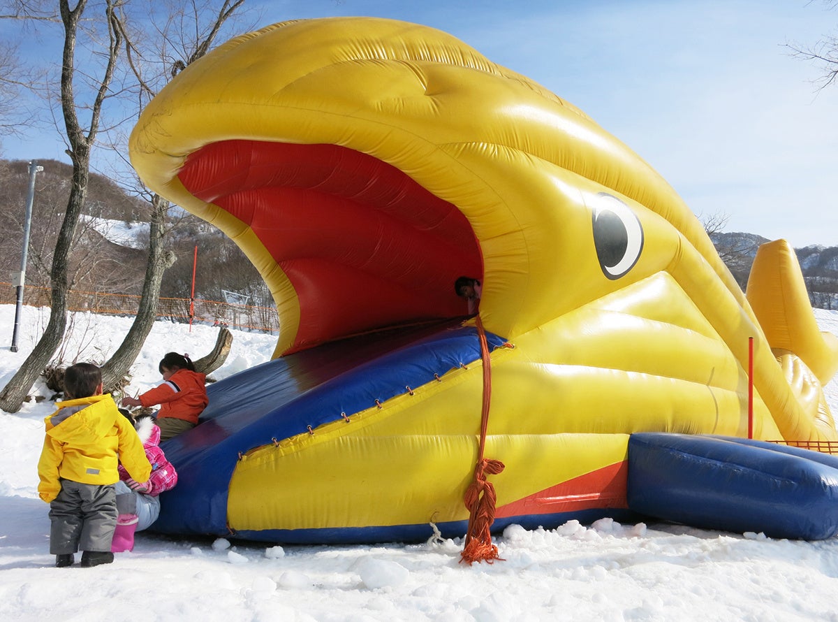 【子供たちが遊べる遊具の「ふわふわクジラ」も登場!!】
