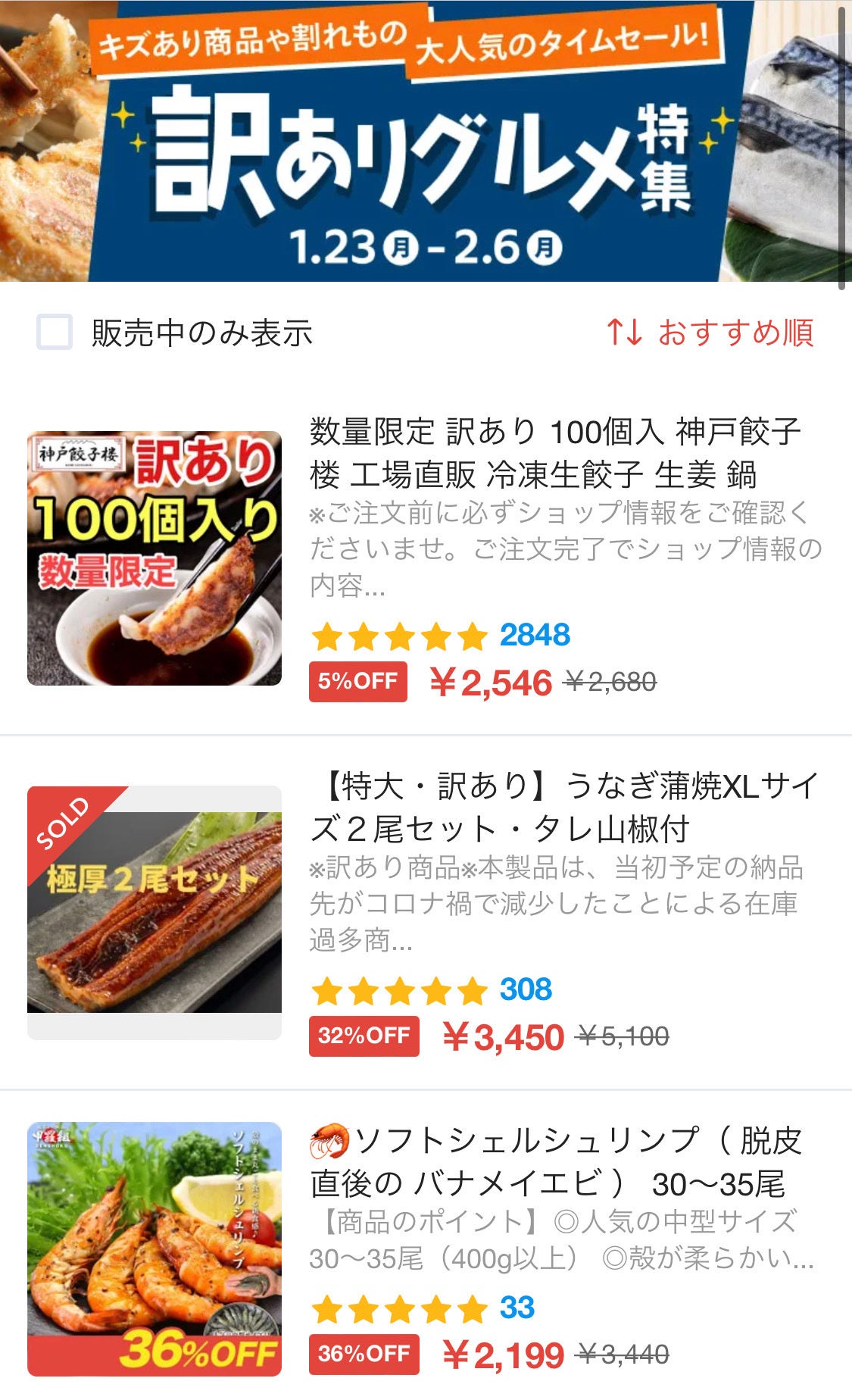 商品:形が不揃い、切り落とし部位など美味しさはそのままだけど、おトクに購入できる商品が並びます