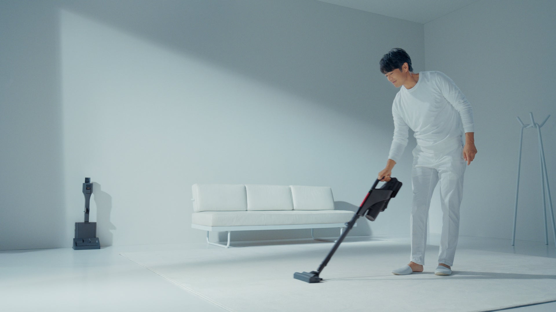 「掃除機のお掃除とゴミ捨ては、いつまで人間の仕事だろう。」という問いかけと共に、反町さんが掃除機のブラシに絡まった髪の毛を、手で取り除くシーンから始まります。続けて、ダストステーションに戻すだけで、ブラシの掃除から本体のゴミ捨てまで自動で行う掃除機「TORNEO cordless」の「自動お手入れ機能」を紹介。面倒な作業から解放され、穏やかに時を過ごす反町さんの姿を通して、お手入れの負担を軽減する本製品の魅力を伝えます。