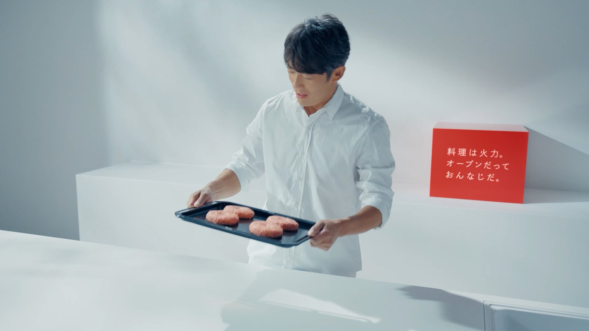 「料理は火力。オーブンだって、おんなじだ。」というナレーションと共に、反町さんがハンバーグをオーブンに入れるシーンから始まります。オーブンレンジ「石窯ドーム」の特長であるドーム構造が生み出す350℃の大火力が、うまみを閉じ込め、ジューシーに焼き上げる様子を描きます。焼き上がったハンバーグをおいしそうに頬張る反町さんの満足げな表情に注目です。
