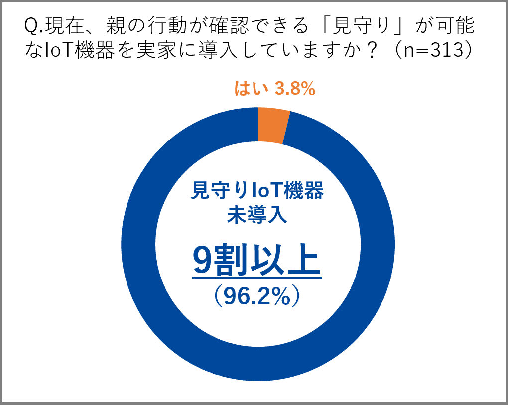現在、親の行動が確認できる「見守り」機能を持ったIoT機器は、9割以上が未導入。
