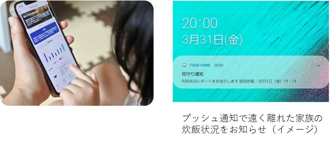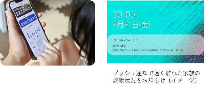 「見守り通知」で毎日の炊飯状況が見れるため、親と離れていても安心!