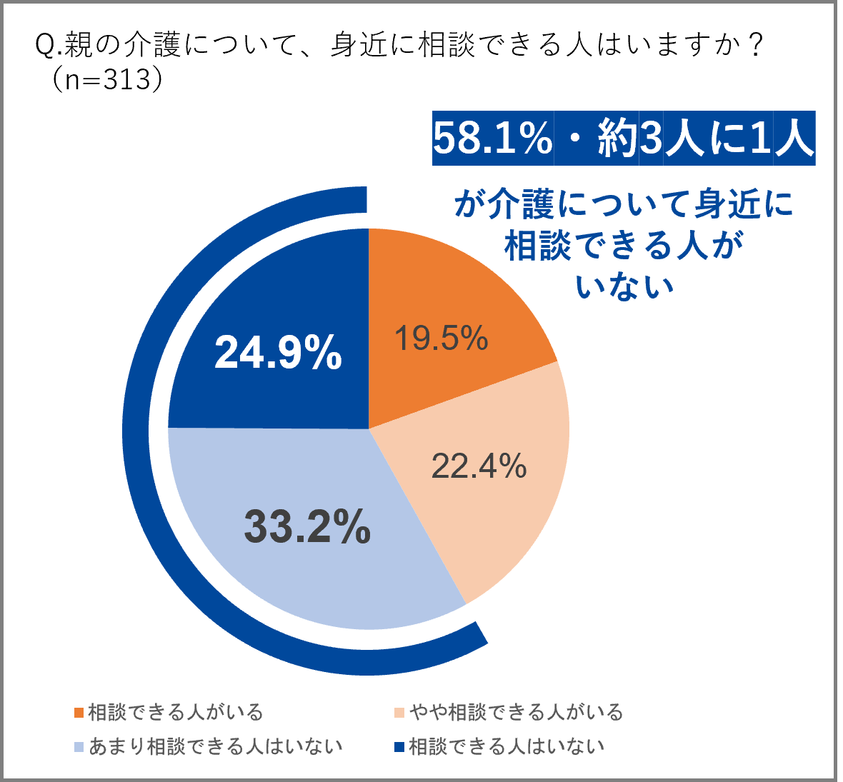 また58.1%が介護について身近に相談できる人がいないと回答。